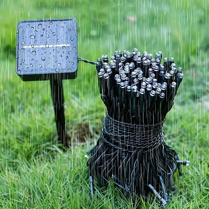 1️⃣ Colocar las luces de acuerdo a su gusto con el panel solar expuesto en la luz del día.